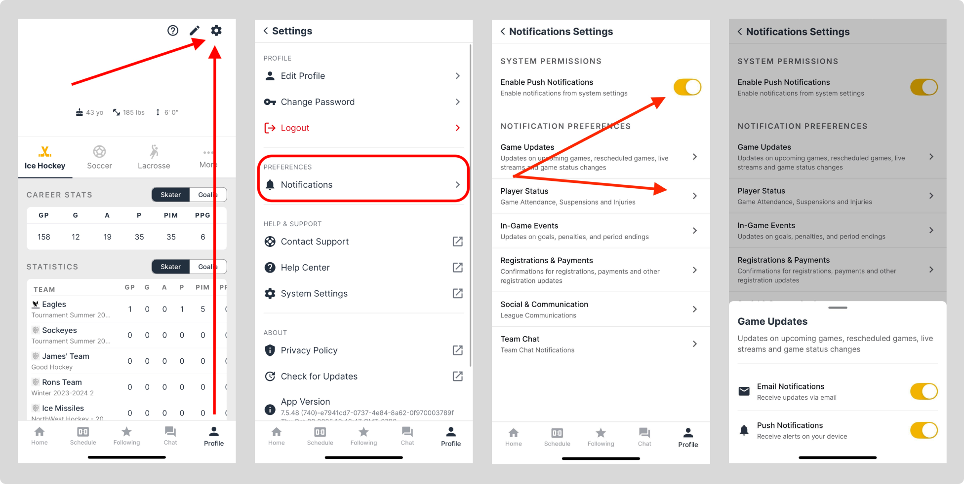 Turn ON or OFF instant notifications and updates for Game Events - on your mobile devices, including goals and penalties